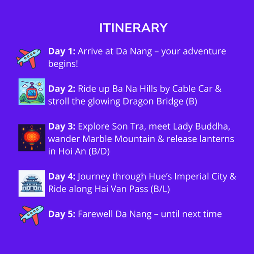 This means the price (11,450 PHP for Da Nang or 13,975 PHP for Sapa) covers everything inside Vietnam: 3-star hotels, private AC vehicles, tour guides, entrance fees, and some meals. It does not include your roundtrip airfare from the Philippines, giving you the flexibility to use your airline miles or hunt for "Piso Fares."