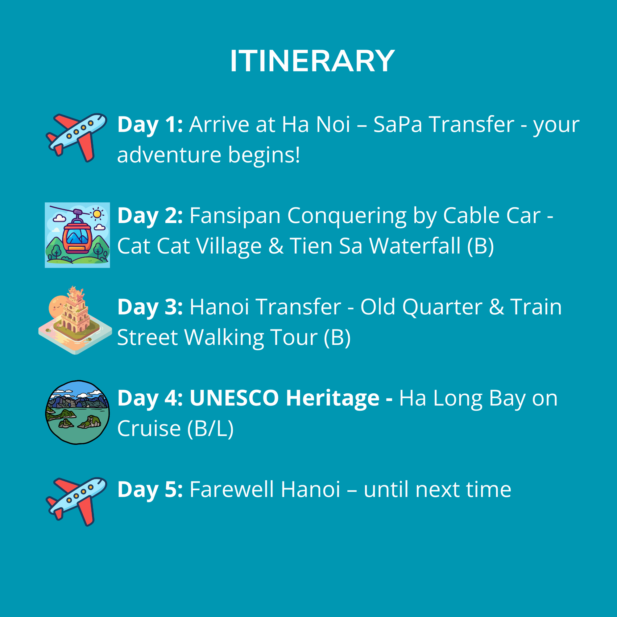 Donโt worry! Once you confirm your tour (at least 30 days before your travel date), our Travel Experts will provide a Free Flight Consultation. We will suggest the best flight numbers and times to ensure you maximize your 5 days in Vietnam without wasting time at the airport.
